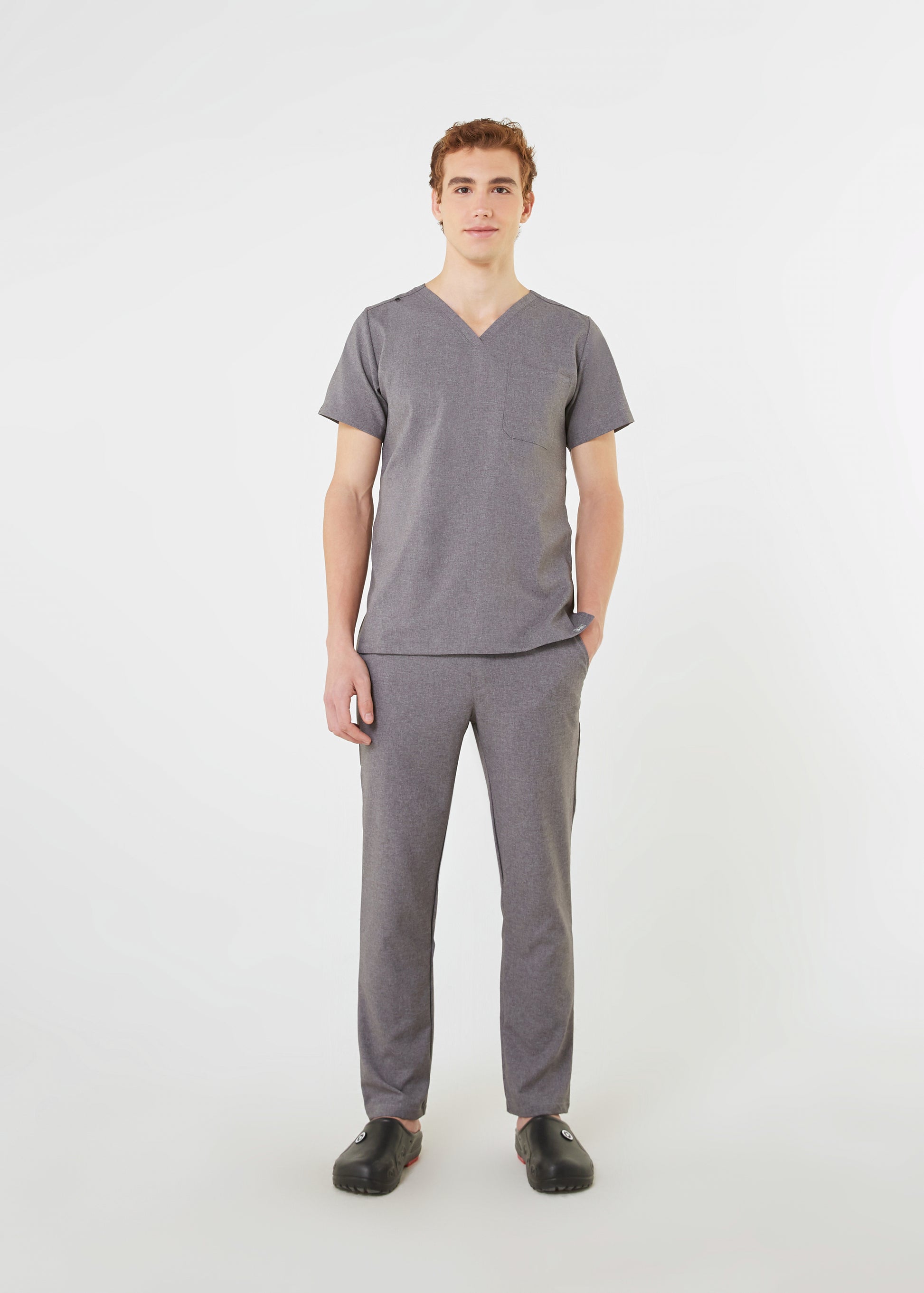 COMFY MEN'S SCRUB TOP in HEATHER GRAY