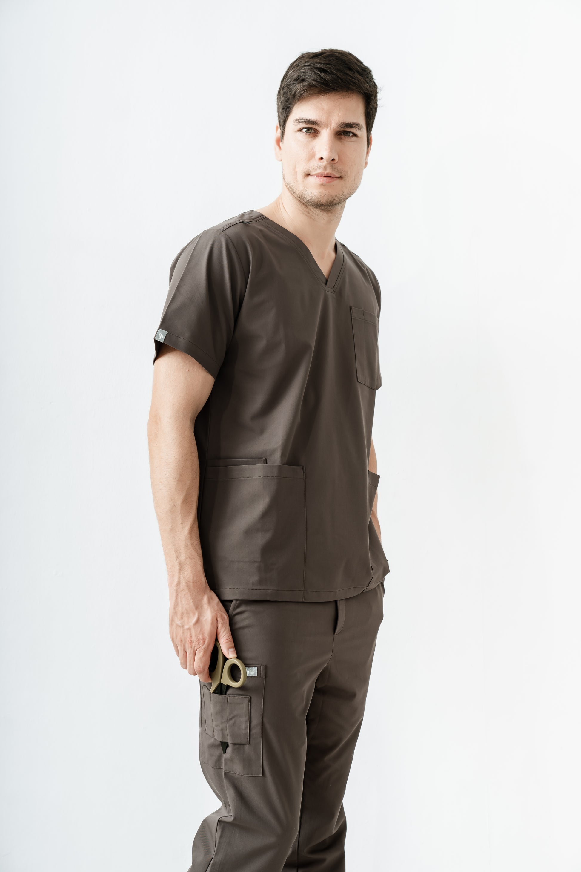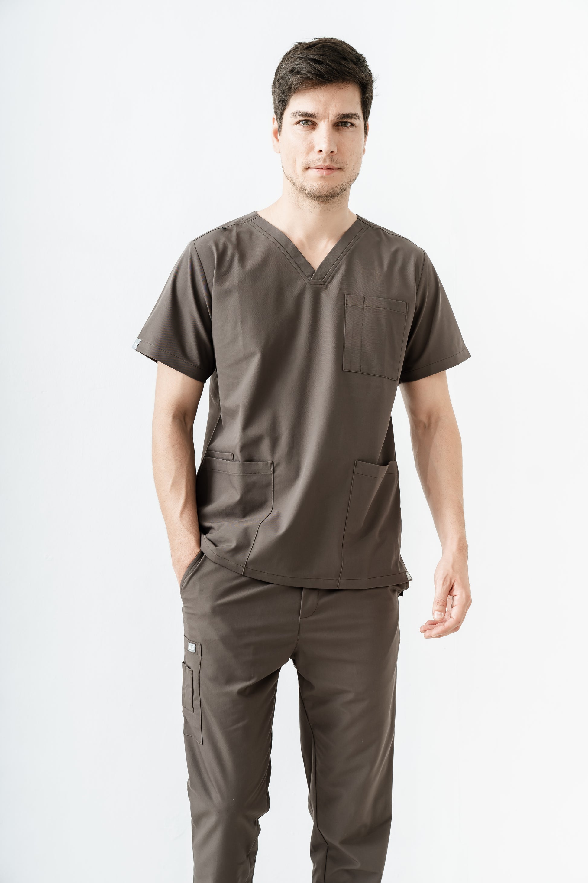 PAT-MED 'JOY' Premium Men's Scrub Top DARK OAK